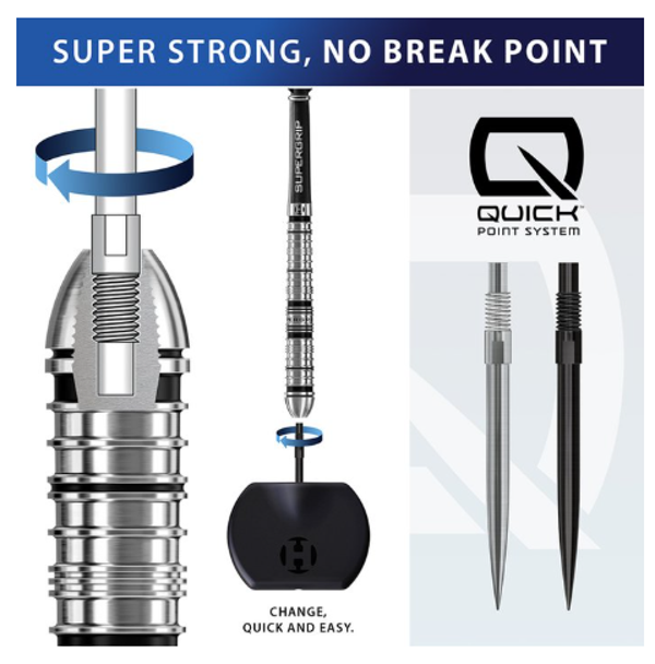 Quick Point is het nieuwe, innovatieve systeem van Harrows waarmee je dartpunten in een handomdraai kunt vervangen. Het is speciaal ontworpen om het wisselen van versleten of beschadigde punten sneller en eenvoudiger dan ooit te maken.