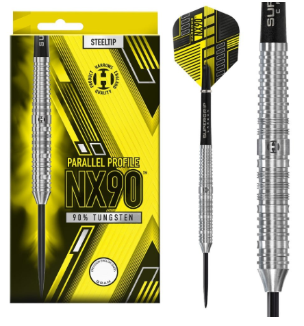 De Harrows NX90 Parallel 90% dartpijl is beschikbaar in de volgende gewichten: 22-23-24-26 gram
