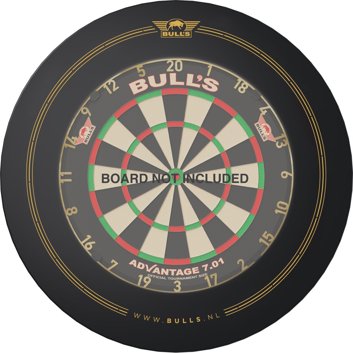 De Bull's Advantage Gold Surround is ontworpen om optimale wandbescherming te bieden en tegelijkertijd een vleugje elegantie toe te voegen aan je dartgebied. Met zijn strakke zwart-gouden ontwerp beschermt deze omlijsting niet alleen je muren tegen verdwaalde pijlen, maar verbetert ook het geheel van je dartopstelling. Met een afmeting van 70x70x4 cm past hij perfect om elk standaard dartbord, wat zowel functionaliteit als stijl biedt.