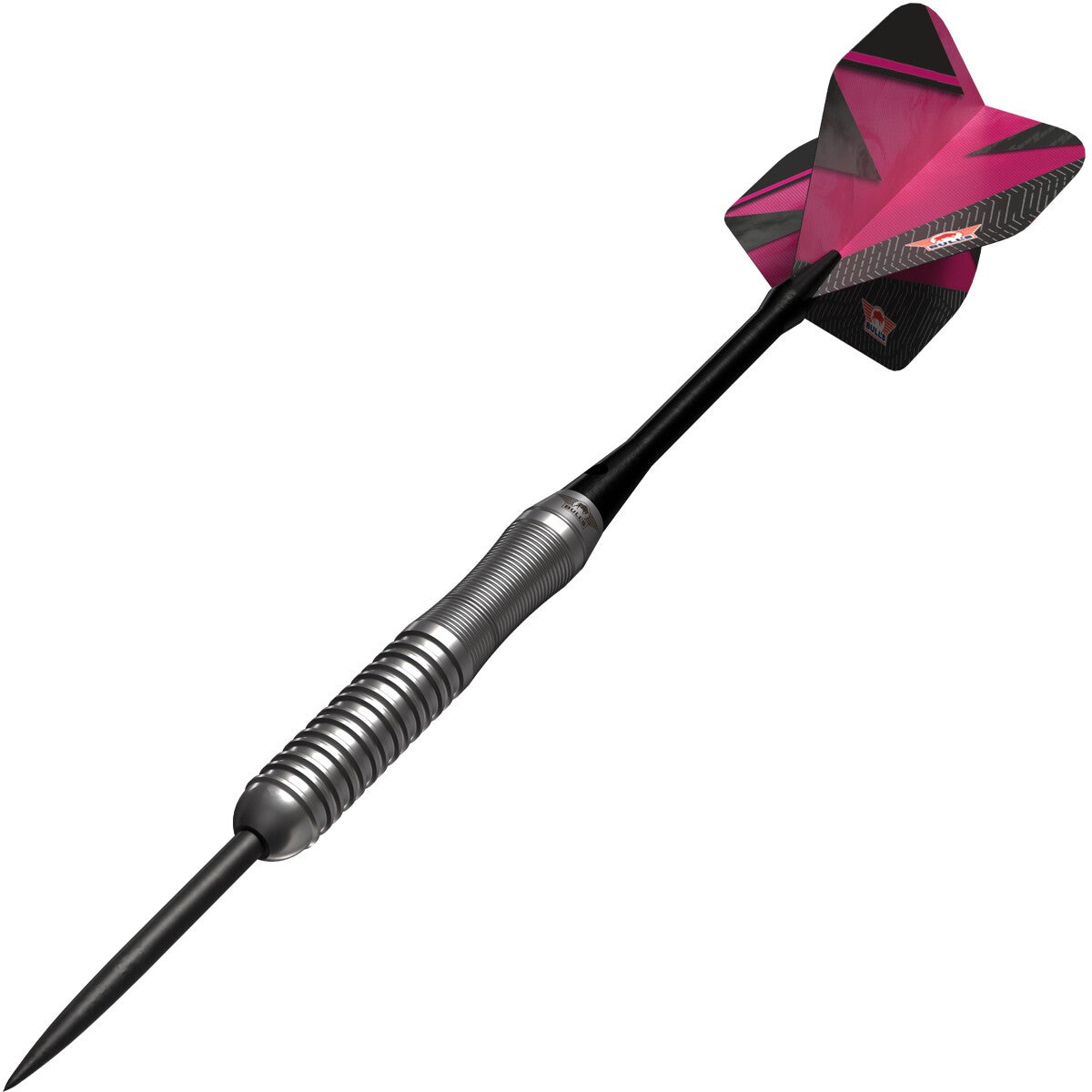 - Stijlvol ontwerp: De Bull's Lightning 80% Roze pijl heeft een zilveren afwerking, aangevuld met de nieuwe Series 100 Lightning Pink No.2 Flights voor een stijlvolle afwerking.