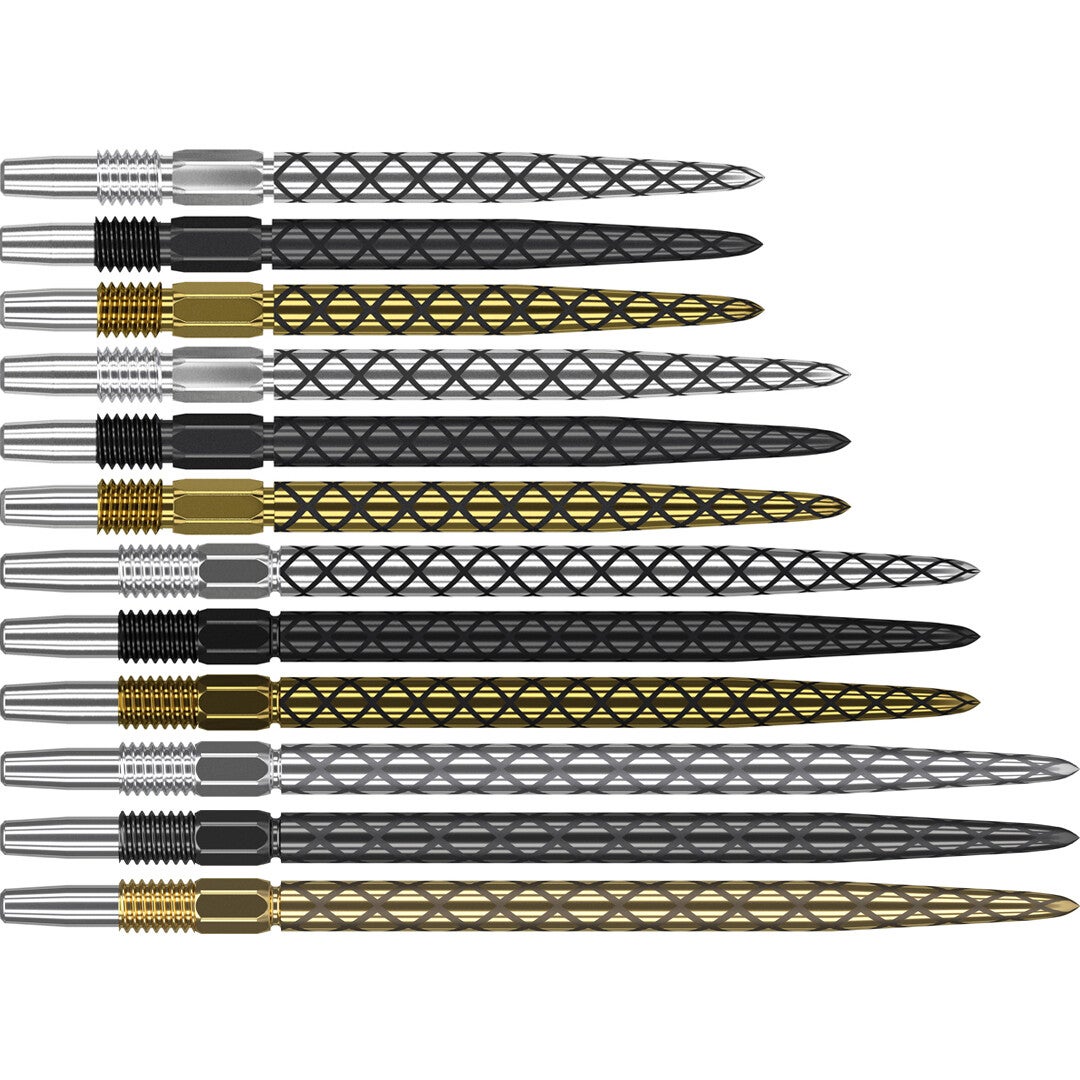Setje van 3 Target Swiss Diamond grippunten. Deze vernieuwde dartpunten kunnen alleen gebruikt worden in Swiss Darts van Target. De Swiss technologie zorgt ervoor dat je gemakkelijk zelf punten kunt vervangen in een handomdraai.